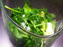 1.ハーブ(パセリ・ディル・バジル・ルッコラ)をミキサーへ。